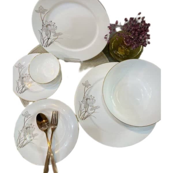 سرویس 26 پارچه قالب بن سامانتا طوسی لب طلا