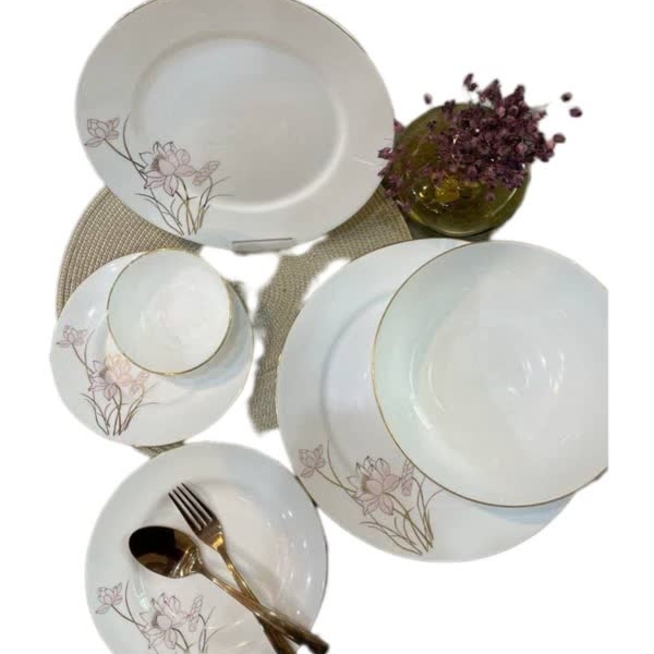 سرویس 26پارچه قالب بن شقایق صورتی لب طلا